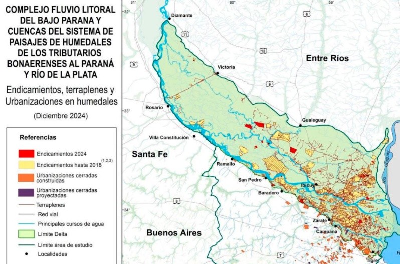 «Áreas endicadas, terraplenes y urbanizaciones cerradas en el Delta del Paraná. Actualización 2025», es el nombre del trabajo que muestra una expansión del problema.